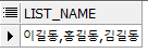 즉, LISTAGG(USER_NAME, ',')으로 표현했을 경우 홍길동,김길동,이길동으로 포현되며 마지막 이길동 뒤에 ','표시는 생략됩니다.